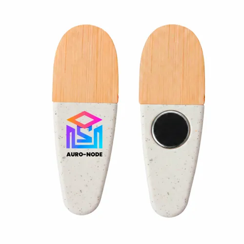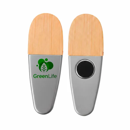 • Align your brand with sustainability using the Environmental Power Clip. This eco-conscious tool features a natural bamboo and wood grip paired with a durable plastic body, making it a perfect functional giveaway for environmentally-minded campaigns. Its built-in magnet ensures your logo stays front and center on refrigerators or office cabinets.